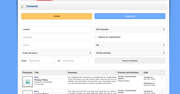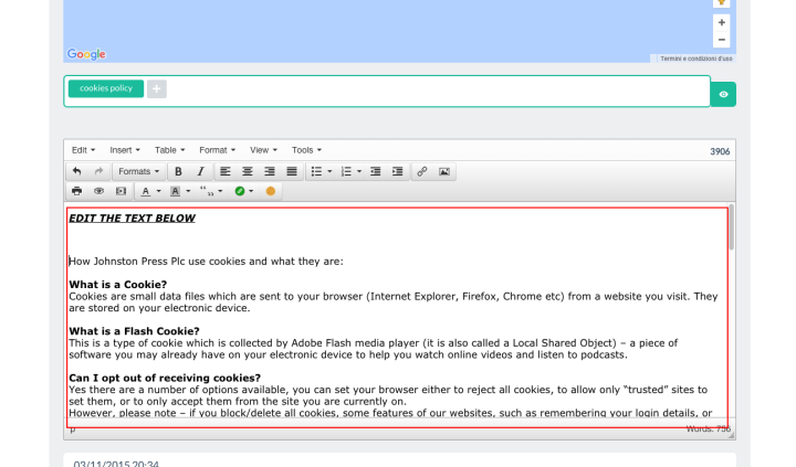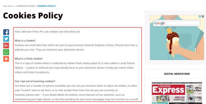 search for the cookie policy content