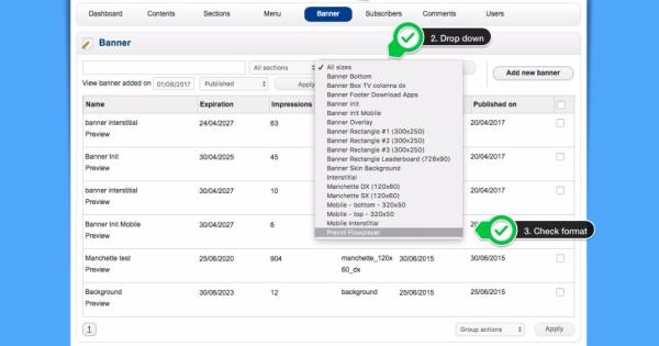 N.B. The contents should be published in the sections where the preroll (banner) was activated in the previous step.