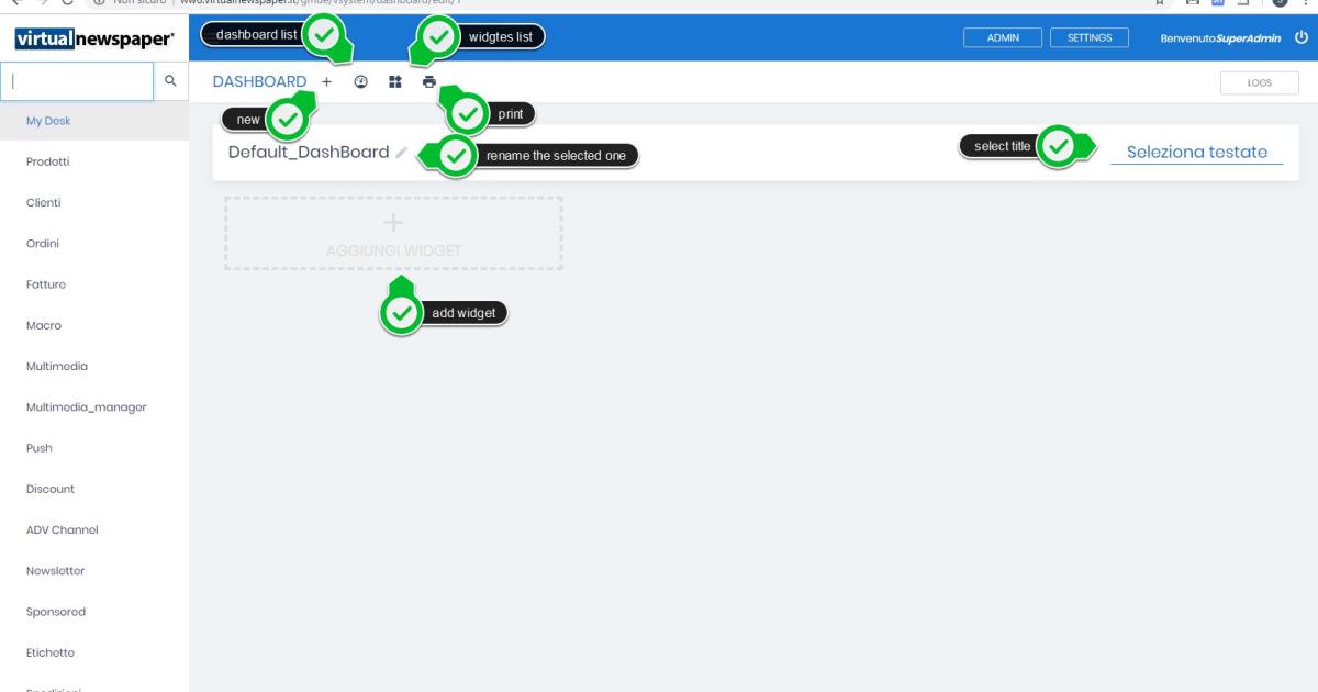 If you want, you can add a new dashboard clicking on the "add dashboard" button.