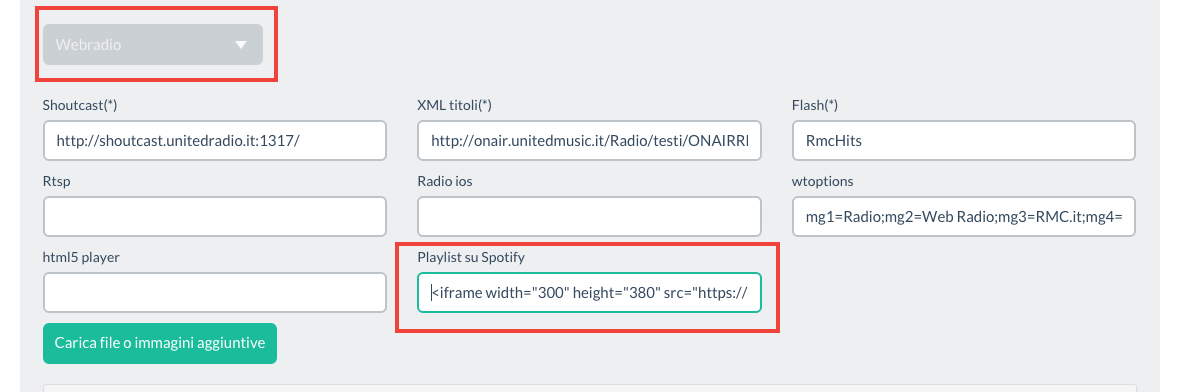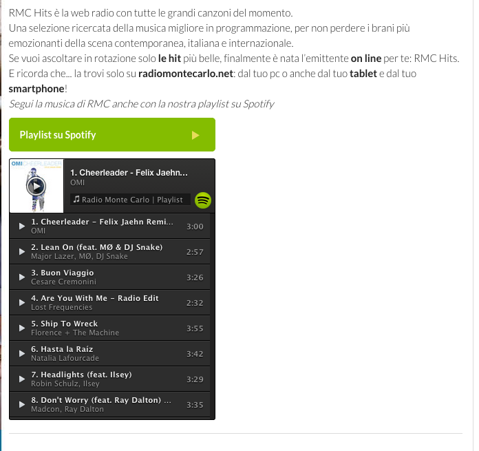 Ecco le istruzioni per embeddare correttamente l'iframe spotify all'interno del layout webradio: