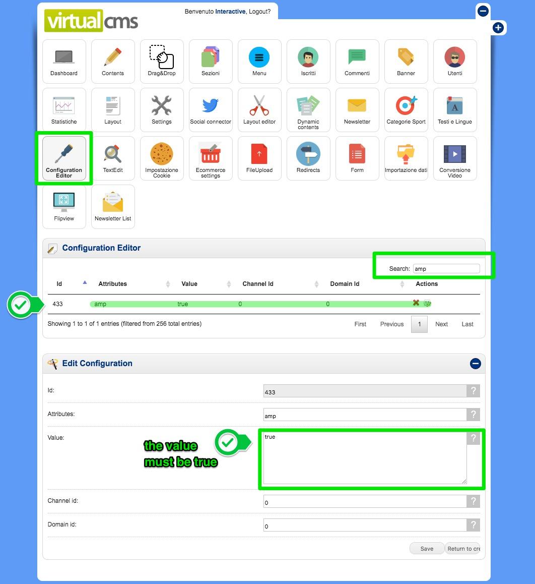 You need to go to the Configuration Editor, look for the AMP key and change its value from false to true.