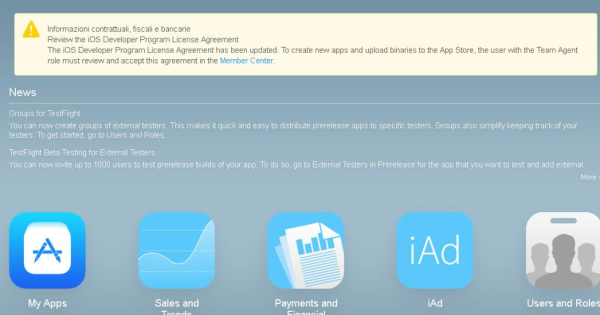 L'alert non riguarda l'applicazione ma l'account Developer iTunes.