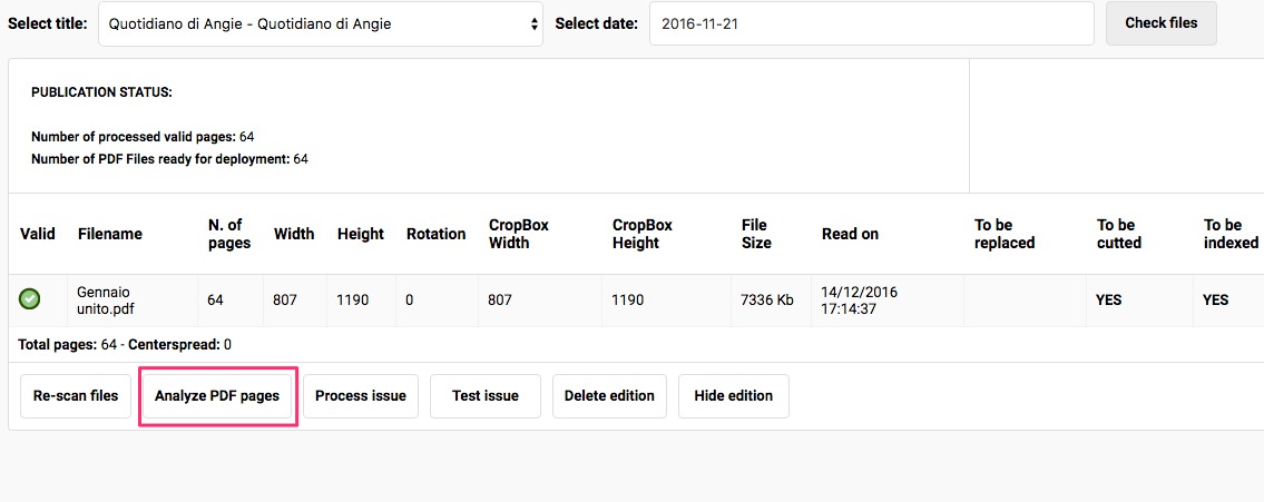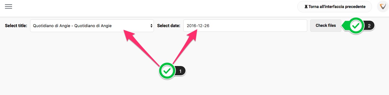 Selezionare la testata e la data di edizione e poi cliccare su CHECK FILES