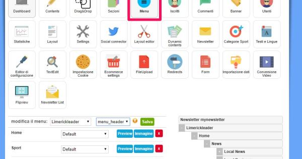 Questo modulo gestisce tutti i menu di tutti i canali e permette di aggiungere, rimuovere o ordinare le sezioni.