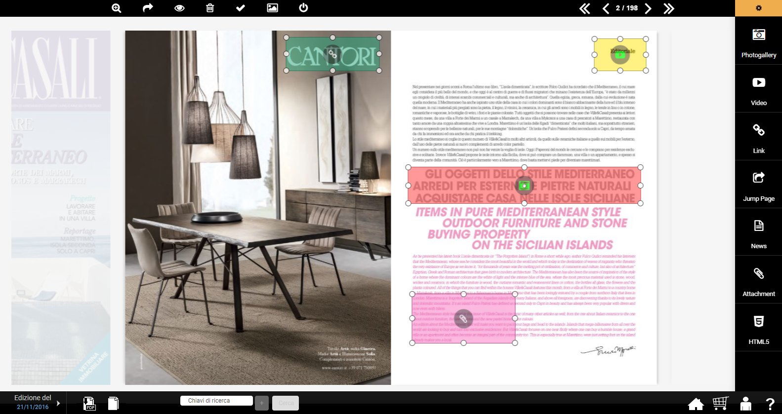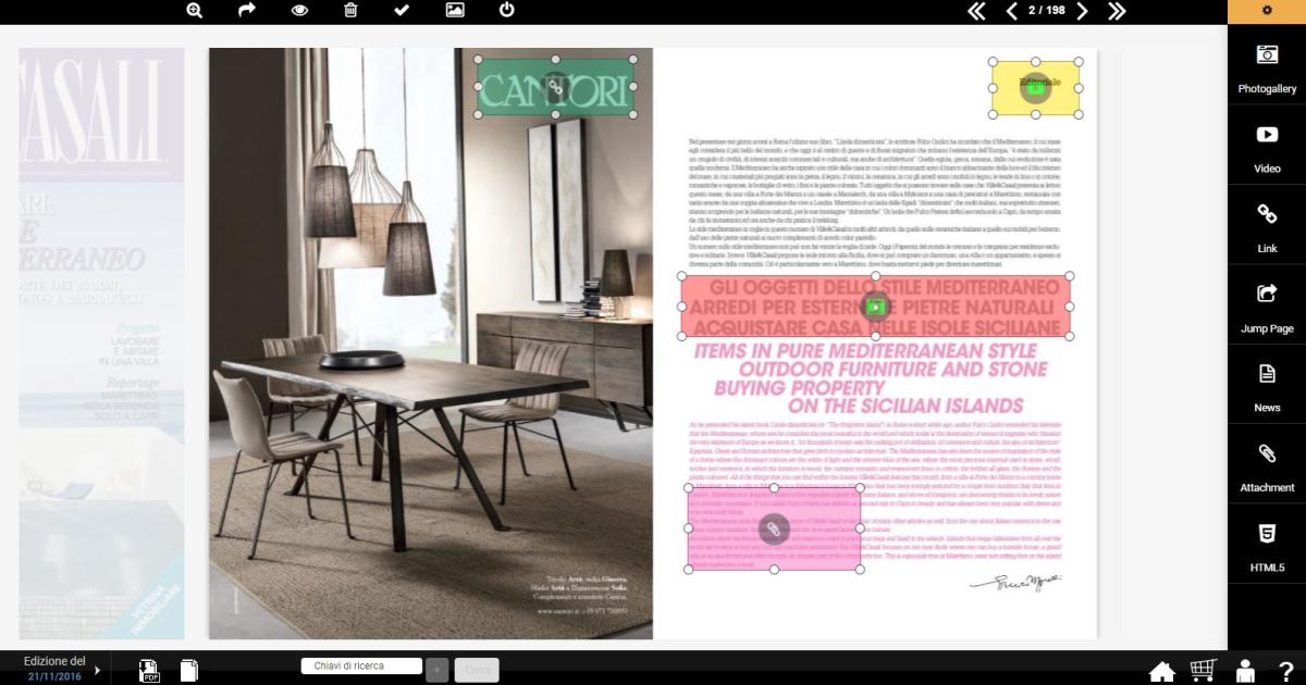 By using the menu right , you can click a content and drag it into the page interested. In this way you can complete your edition page with multimedia files, link, attachment, jump page, ecc...