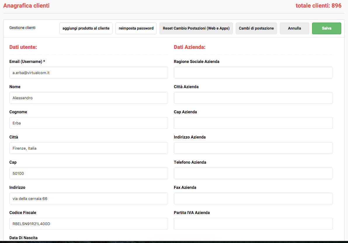 - Entrare nel dettaglio del cliente cliccando sull'icona modifica (icona a forma d'ingranaggio)
