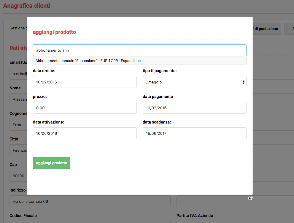 - Ricercare il cliente a cui si desidera associare il prodotto