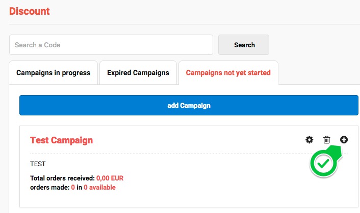 La campagna promozionale appena creata si troverà nella sezione “Campaigns not yet started” e per aggiungere la promozione si deve: