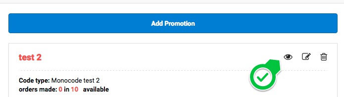 Nel box che si è venuto a creare con la promozione cliccando su VIEW CODES (icona a forma di occhio) si può prelevare l’elenco dei codici validi per la campagna