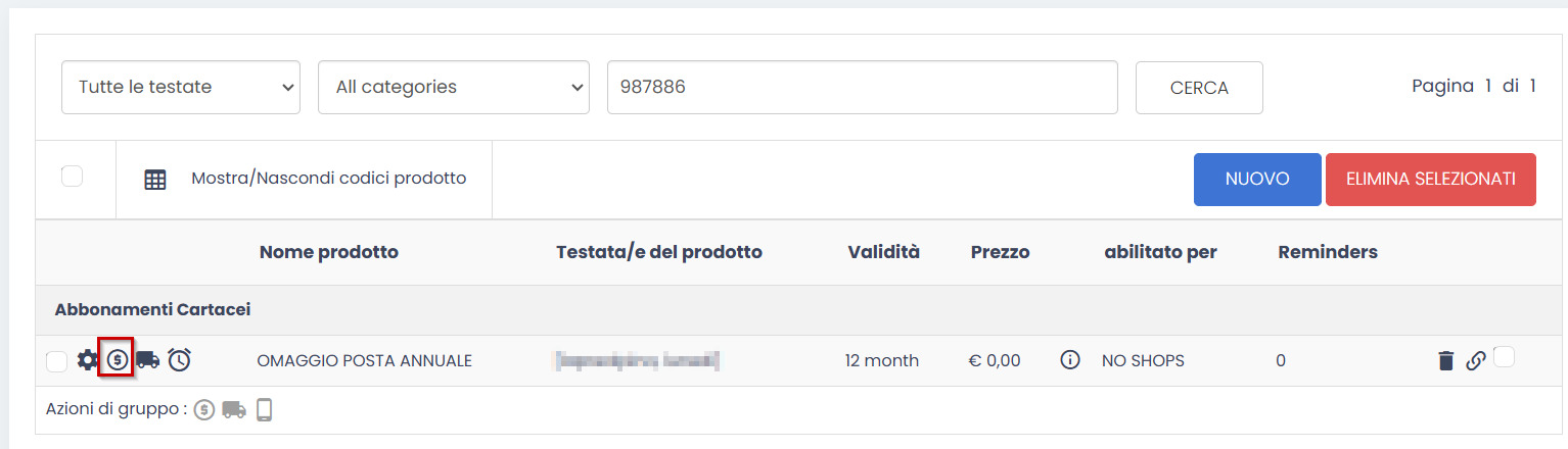 To add the complimentary payment method, simply go to the product module, search for the product in question (e.g., product id 987886), click on the dollar icon, and add the 'Complimentary' payment (see screenshot below).
