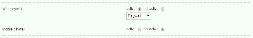 Web paywall, Mobile paywall: You can set the section to be accessible only to some registered users. To do this you can set the paywall for the desktop and mobile version.