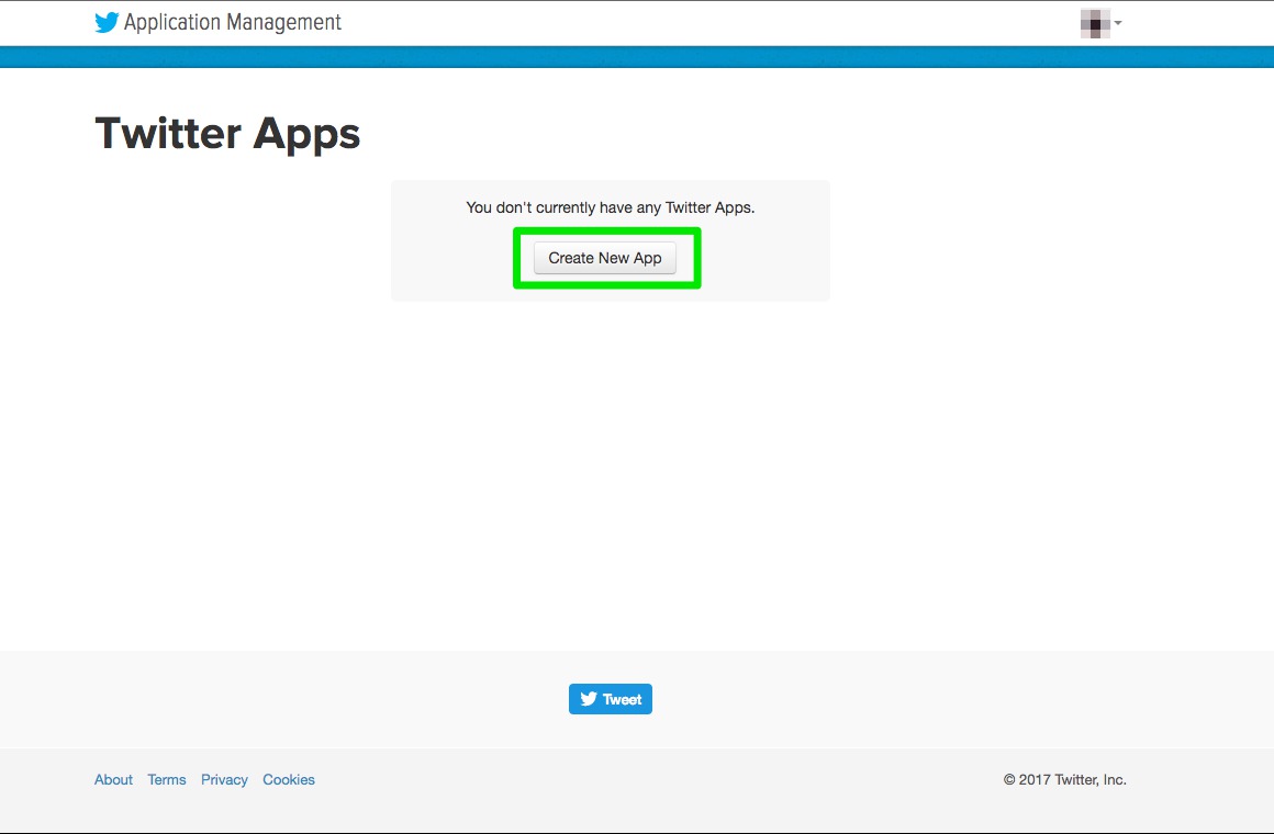2. Go on Twitter App Page here and, once you're logged in, click on "Create New App".