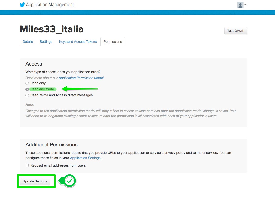 5. Now look at the toggles under the application name you have inserted before and press "Permissions".