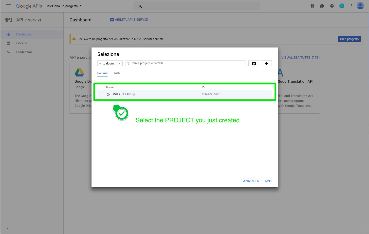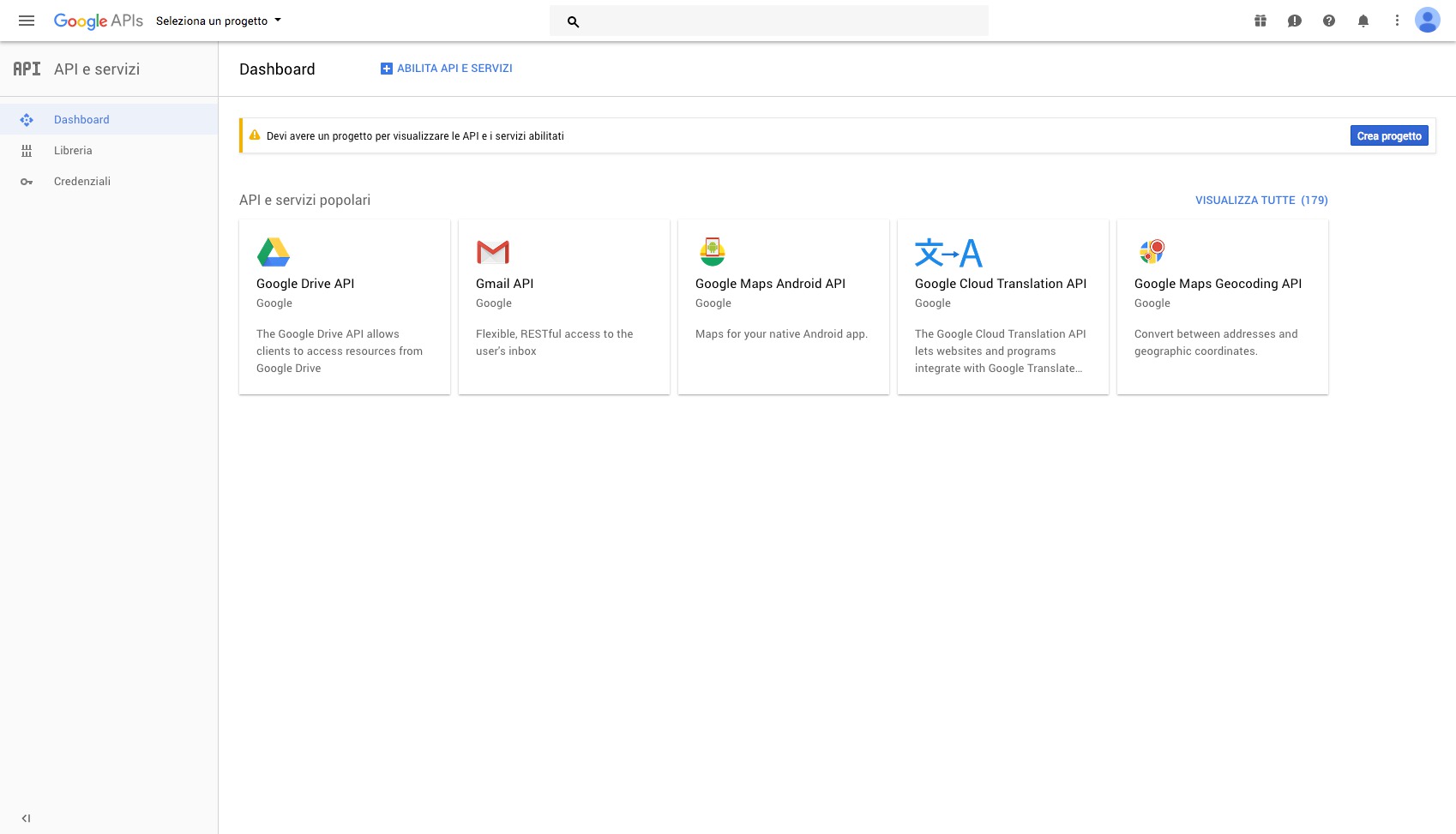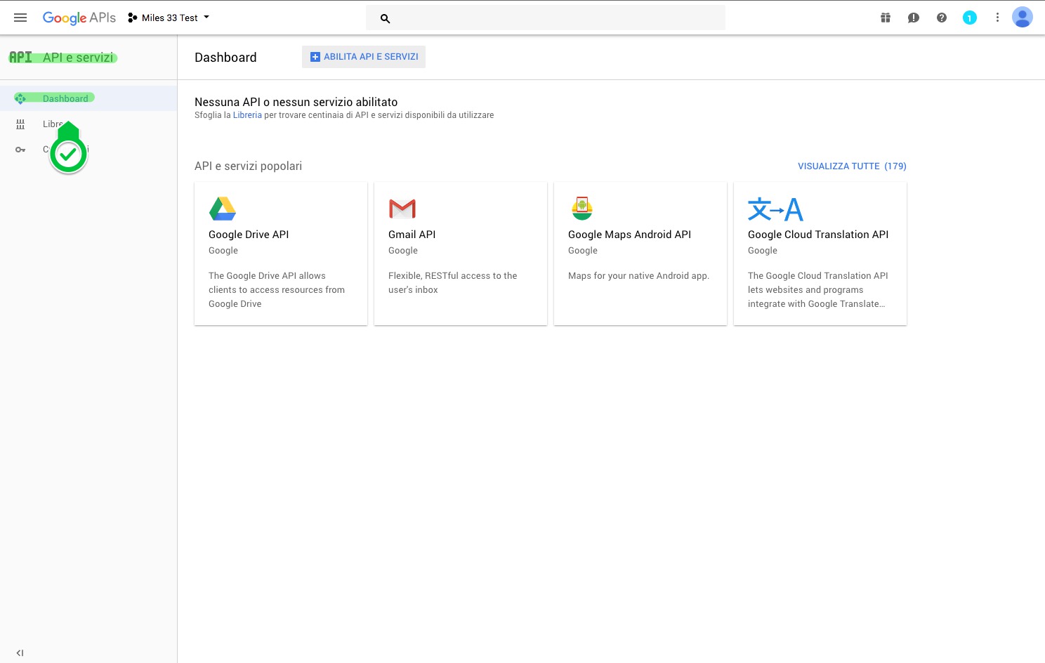 If you don't, click on the hamburger menu at the top left of the screen and select "APIs and Services" > "Dashboard"