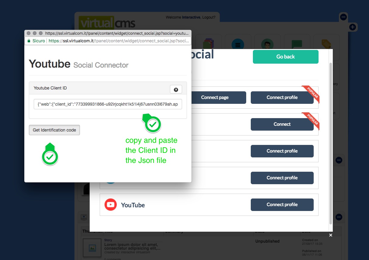 3. You'll be redirected to a page where you will have to fill the field with the client ID found in the json file previously downloaded (N.B. only the client ID, not all the content of the file).