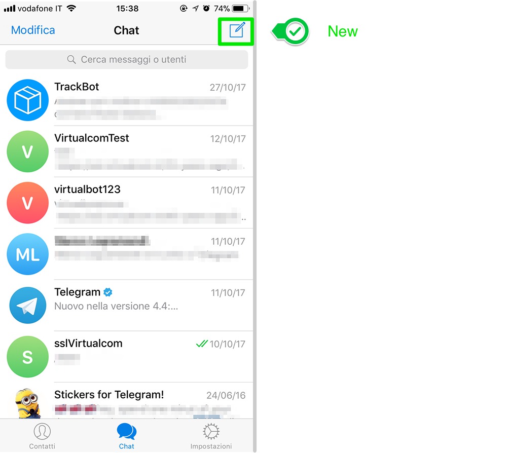 1. On the Conversation list tap/click on the button that allows you to open a new chat (it is different depending on the devices and on the OS)