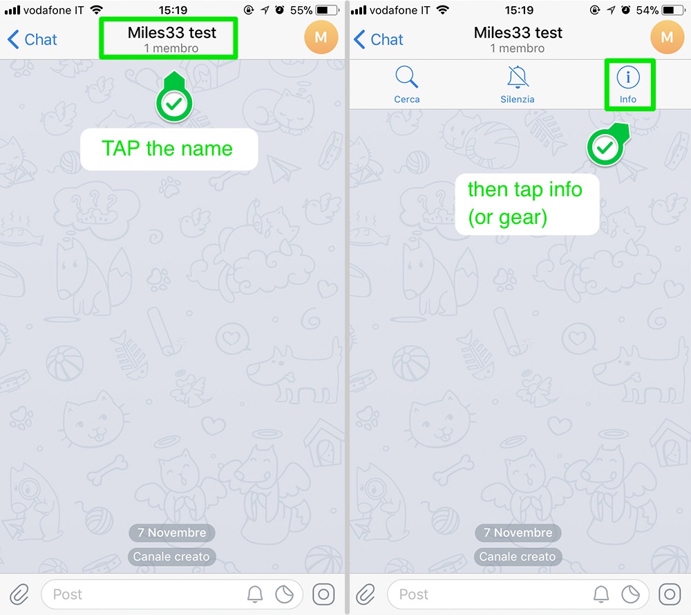 1. Enter in the "channel conversation" and tap on the name at the top.