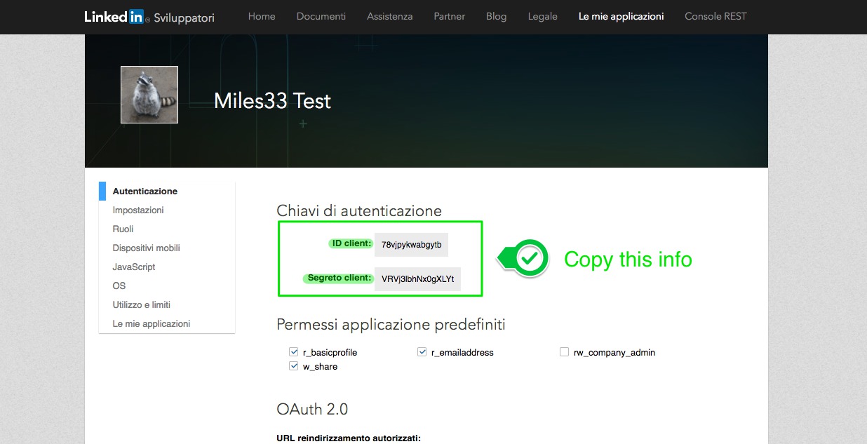 6. In the following page, you can copy the "Client ID" and the "Client Secret" that you will then use on CMS.