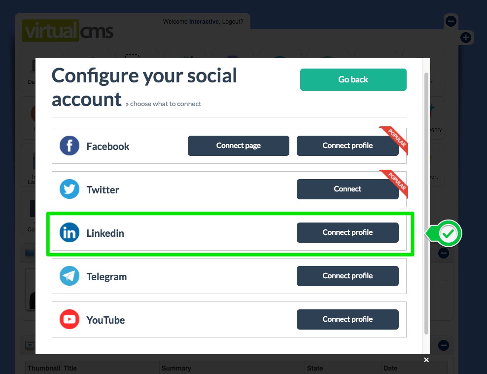7. That's it, your account has been connected to the CMS.