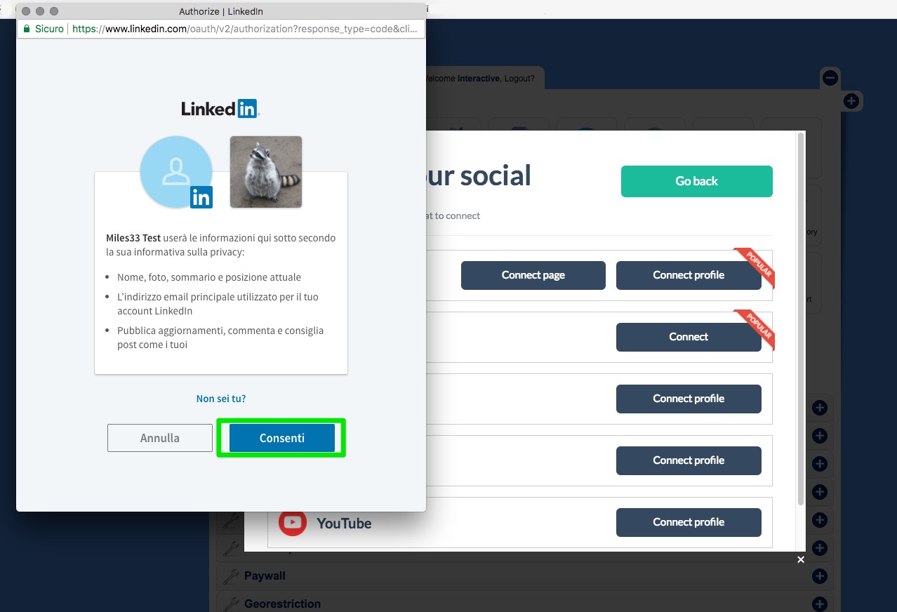 6. You'll be redirect to a Linkedin page where you have to confirm the informations that the app will recive.