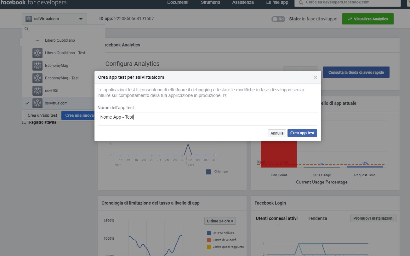 - Attributes: facebook_apikey_test --> Value: Inserire l'Id dell'app di test