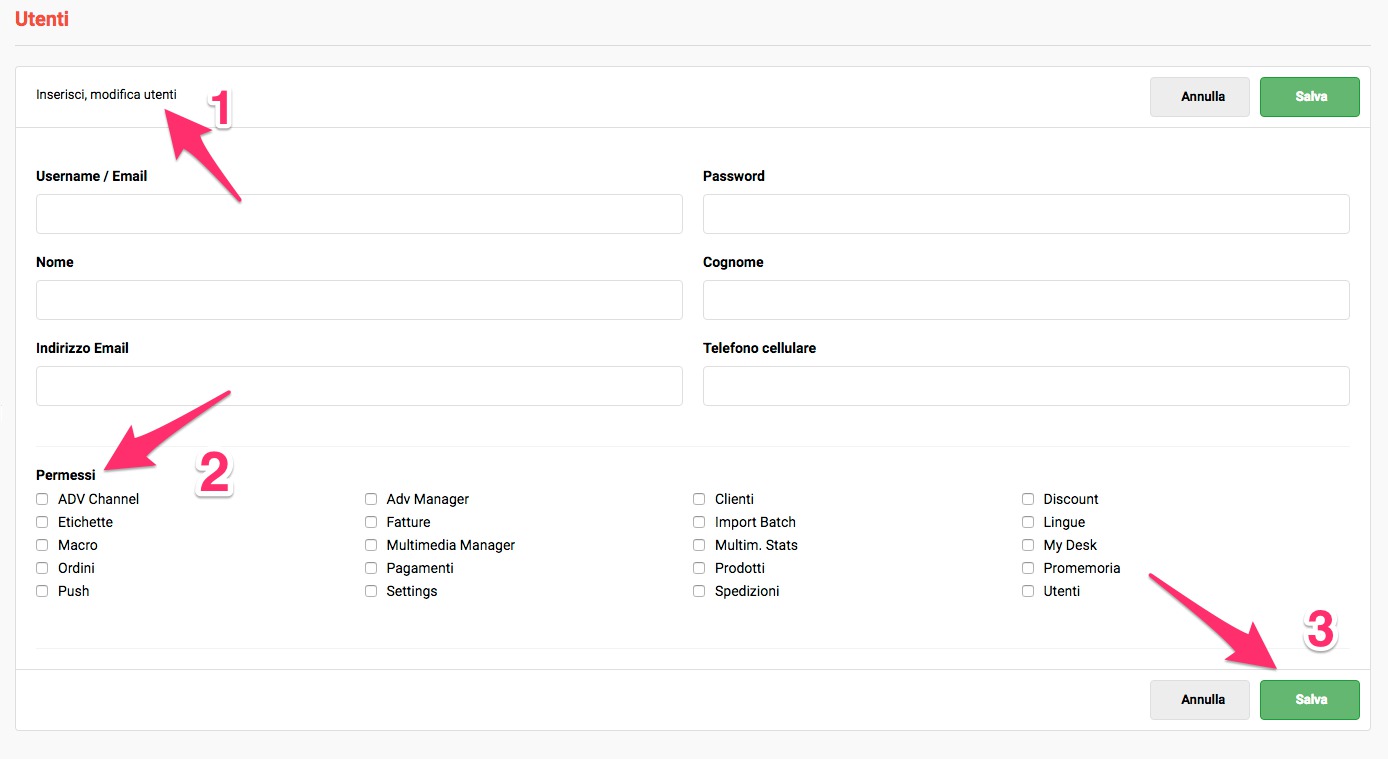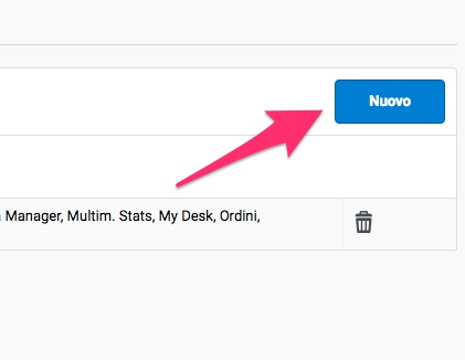 Una delle prima operazioni da effettuare nel backend VNP è quella di creare nuovi utenti ed assegnare loro dei permessi, ossia stabilire quali sono i moduli a cui possono accedere.