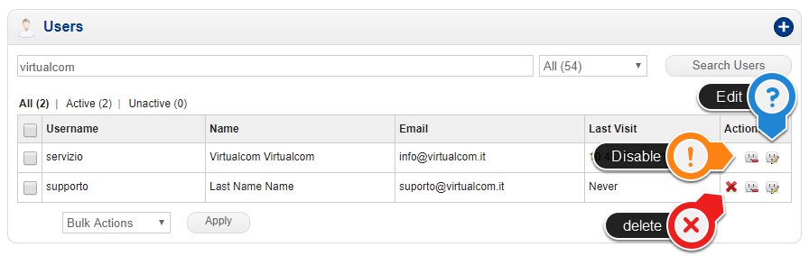 To manage users, there are 3 possible actions: