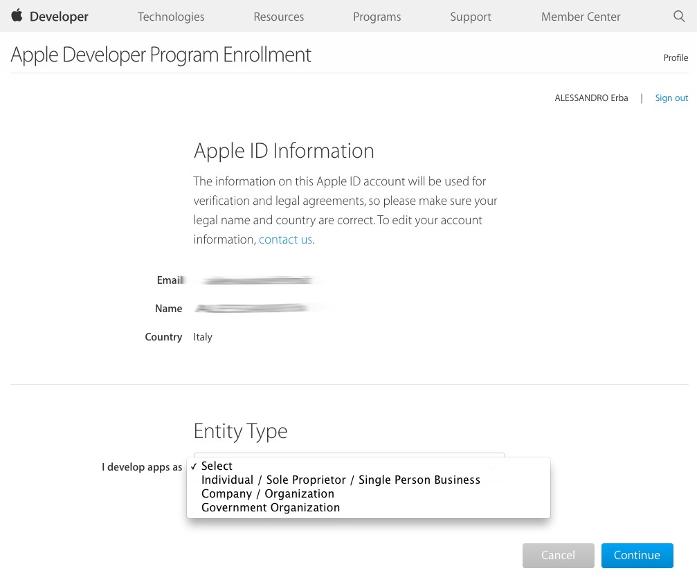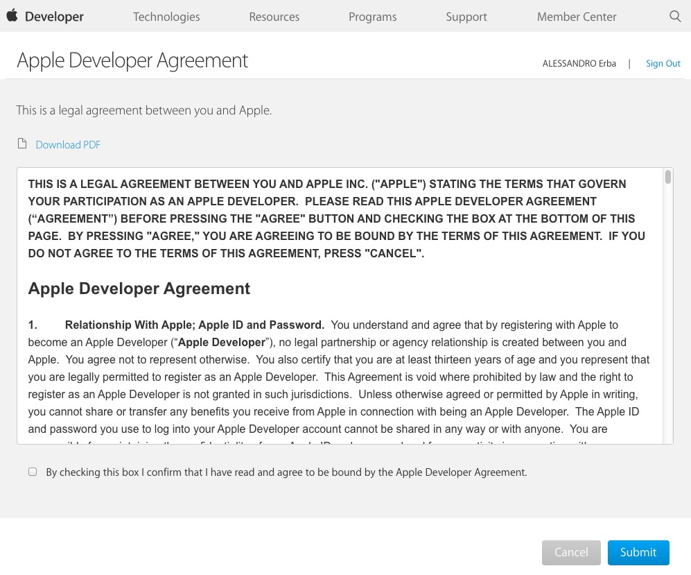Note: The Apple Developer Program is 99 USD per membership year or in local currency where available.