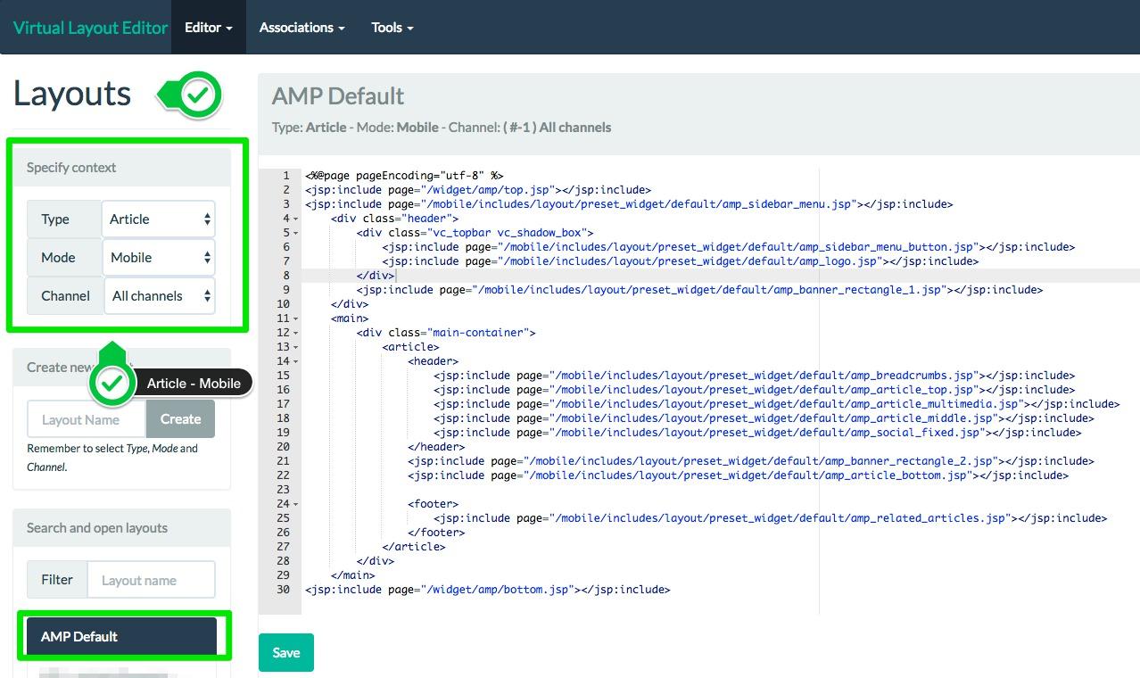 The layout is called AMP Default and is located in Layout Editor > Layout > Type: Article - Mode: Mobile.