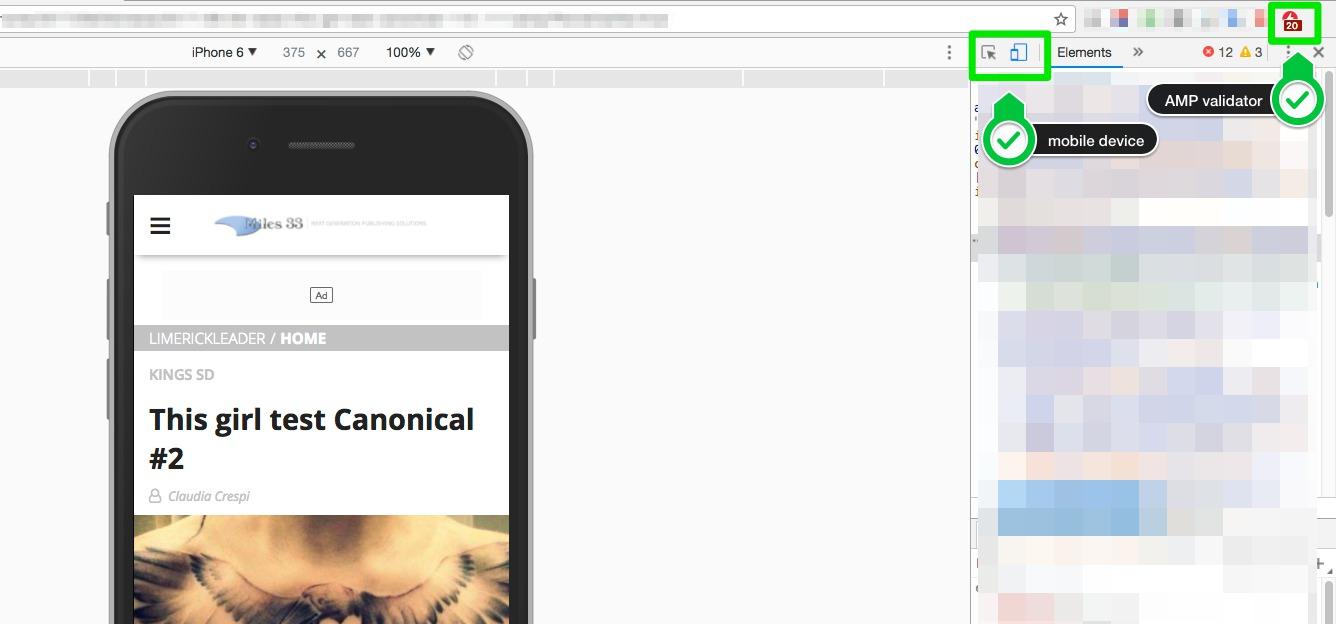 3. Go to your platform, open any article, press the symbol of the AMP validator that you have at the top right along with all the other extensions.